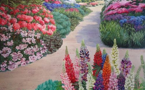 This narrow path leads you through a beautiful garden, over flowing with vibrantly coloured Lupines, Azalea, Lavender, Rhododendron and Iris; into the warm and inviting light. SIZE: 1500mm x 900mm PRICE: $5,000 – $7,000